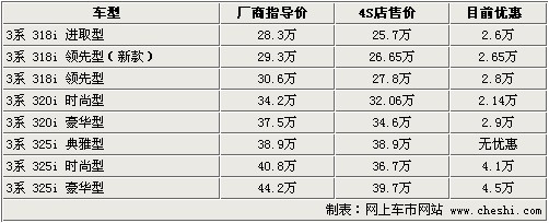 據(jù)4S店銷售人員介紹:寶馬3系推出一款新318i領(lǐng)先型,目前318i領(lǐng)先型共有2款,但是配置有所不同。新款車型相比在售的30.6萬元的車型配置有所降低,但是相比318i進(jìn)取型多了幾項(xiàng)實(shí)用配置,但優(yōu)惠后的價(jià)格僅比318i進(jìn)取型價(jià)格高了不足1萬元。目前寶馬3系318i全系無現(xiàn)車,預(yù)定需等到11月底、12月份才能到車,顏色為黑色。320i目前時(shí)尚型有現(xiàn)車,顏色為紅色,豪華型需預(yù)定。寶馬3系全系最高優(yōu)惠4.5萬元,相對(duì)優(yōu)惠價(jià)格較穩(wěn)定。