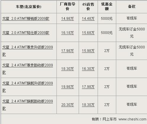 三菱戈藍是東南三菱研發(fā)的一款新一代中高檔車,但是戈藍的價格卻沒有定的那么高,14.98-20.30萬元的價格區(qū)間,讓很多消費者都對戈藍產(chǎn)生了興趣。近日,網(wǎng)上車市走訪了北京地區(qū)東南三菱4S店,發(fā)現(xiàn)戈藍目前有大幅度的優(yōu)惠活動,具體信息請參考下表: