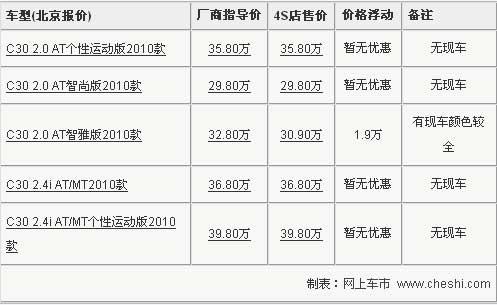 沃爾沃旗下的豪華轎跑車全新改款C30已于3月18日正式在中國上市,憑借著時尚的外觀設計和沃爾沃的品牌影響力,自上市以來受到了廣泛關注。近日網(wǎng)上車市記者也從沃爾沃北京經(jīng)銷商處了解到,目前C30最高優(yōu)惠1.9萬元,詳情參考下表: