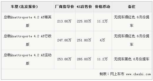 據(jù)北京地區(qū)瑪莎拉蒂展廳銷售人員介紹,全新Quattroporte總裁目前沒有現(xiàn)車銷售,但6月份會有一批現(xiàn)車抵達(dá)展廳,其中包括酒紅色的精英版,售價225萬元;還有酒紅色的行政版,售價251.8萬元;另外,全新Quattroporte總裁運動版將會有一臺黑色現(xiàn)車抵達(dá),售價265萬元。該銷售人員表示,這批全新Quattroporte總裁將會在原有車型上增加更多配置,所以價格會有所提升。