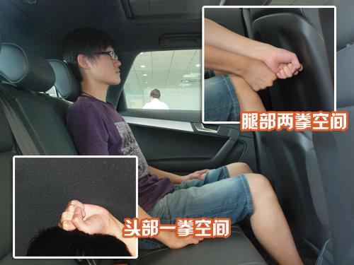 測試者座椅調(diào)整合適以后,正常坐姿時頭部有一個拳位余量,腿部活動自由,沒有特別拘束的感覺;后排空間表現(xiàn)正常;測試者正常坐姿下,腿部空間表現(xiàn)很好,有兩個拳位余量,頭部表現(xiàn)尚可,有一拳空間,測試者沒有壓迫感。(測試者身高178CM)