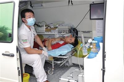 一名傷者在急救車內(nèi)接受救治。讀者李濤攝