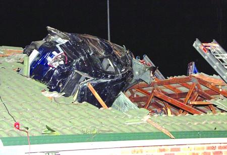 據(jù)英國媒體報(bào)道,澳大利亞悉尼市郊區(qū)10月19日發(fā)生了一起離奇的交通事故,一輛疾駛中的汽車突然失控,在飛越了幾十米后砸爛了一處平房的屋頂,屋內(nèi)一家三口僥幸逃脫。