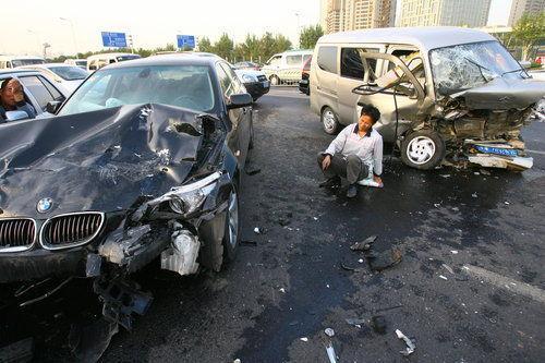 “好在寶馬車內(nèi)的兩名司乘人員都系著安全帶,才沒有造成嚴(yán)重的身體傷害!泵窬f。