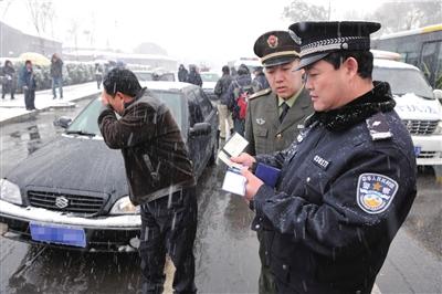 幾天的大雪,使頤和園周邊的地鐵4號線附近黑車聚集。昨天清晨,海淀警方聯(lián)合區(qū)城管、交通執(zhí)法部門在青龍橋派出所集合,對地鐵4號線頤和園、西苑站周邊的治安秩序及黑車非法攬客進行清理。數(shù)名司機接受檢查,經(jīng)過城管及交通執(zhí)法部門甄別后,對黑車司機進行警告和教育。