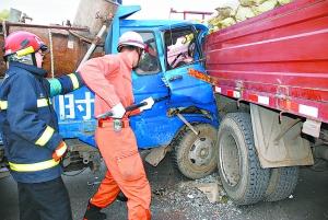 昨天下午5時許,大興區(qū)黃村鎮(zhèn)劉村附近,一輛農用四輪車和一輛卡車相撞,農用四輪車上兩人被卡,大興區(qū)西紅門消防中隊迅速趕到現場,將被困人員救出,所幸兩人無生命危險。