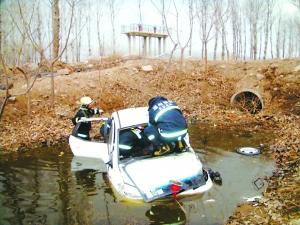 昨天下午5時(shí)52分,漷馬路京津高速橋邊,一白色兩廂轎車翻入路旁河溝里,一名男子被困車內(nèi)。經(jīng)過通州區(qū)馬駒橋中隊(duì)10分鐘救援,受困人員被成功救出。