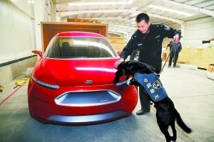 北京國(guó)際車(chē)展本月25日舉辦,目前空運(yùn)展品已經(jīng)大部分入境。為防止展品中夾藏違禁品,海關(guān)緝毒犬基地派出兩條訓(xùn)練有素的緝毒犬協(xié)助關(guān)員現(xiàn)場(chǎng)查驗(yàn)。張鵬 唐延智攝