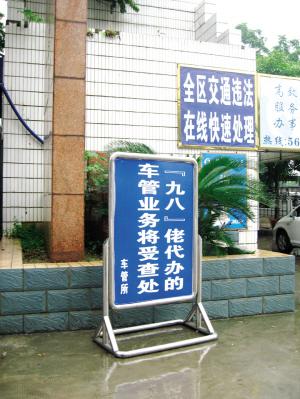 10月21日,南寧車管所江北工作站,警示牌提醒車主按正規(guī)手續(xù)辦理業(yè)務(wù)。