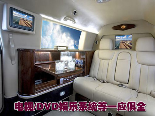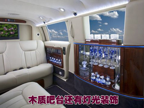 上等的真皮裝潢、電視以及DVD娛樂(lè)系統(tǒng)、小型酒吧臺(tái)均是該車的必要配置,此外其還擁有WiFi 無(wú)線網(wǎng)絡(luò)系統(tǒng)。12伏的電源插口,不銹鋼點(diǎn)綴裝飾的木質(zhì)裝飾吧臺(tái)還有燈光作為點(diǎn)綴。