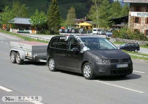 最近諜照記者首次在大街上拍到了下一代大眾途安測(cè)試車的照片,在它的后面還掛了一輛拖車。