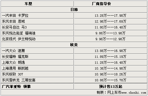 目前國內(nèi)的A級車市場競爭非常激烈,而近期又有多款新車上市銷售,如:三廂世嘉、福瑞迪等。菲亞特Linea領(lǐng)雅以進口方式引入國內(nèi)銷售的售價為17.1萬-18.6萬,菲亞特與廣汽合作生產(chǎn)這款車型之后,其售價也必然會有所調(diào)整,而廣汽菲亞特的定價策略也會參考主要的競爭對手,如:速騰。目前一汽大眾速騰的廠商指導價為13.88萬——16.98萬元,因此我們預計搭載1.4T發(fā)動機的國產(chǎn)Linea領(lǐng)雅售價將在13萬以上。