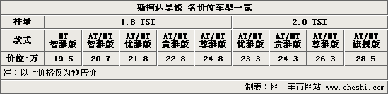 上海大眾斯柯達(dá)推出的全新B級(jí)車Superb昊銳,將于8月18日上市宣布價(jià)格。目前首批展車已經(jīng)運(yùn)抵北京部分斯柯達(dá)4S店,近期部分經(jīng)銷商還將舉辦小規(guī)模的試駕賞車活動(dòng)。與此同時(shí)記者也以消費(fèi)者的身份詢問了北京地區(qū)多家斯柯達(dá)授權(quán)經(jīng)銷商,通過詢問我們得知了斯柯達(dá)昊銳的預(yù)售價(jià)格區(qū)間為19.5-28.5萬元,共分為9款車型: