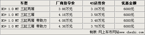據(jù)天津一汽夏利4S店銷售人員介紹,全新夏利N5有望在下個月上市,預(yù)計(jì)售價4.88-5.38萬元,目前沒有展車到店,所以仍然不接受這款新車的預(yù)訂。目前老款夏利N3現(xiàn)車比較齊全,而且全系車型都可以優(yōu)惠6000元,價格全線跌入三萬元區(qū)間。