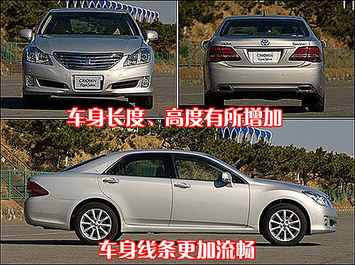 豐田新皇冠由于車身尺寸的增加,使得看上去更加大氣。另外新皇冠車身線條較老款看上去更加流暢,前臉開口部左右分開,使第13代皇冠車型更加成熟、穩(wěn)重!俺俗孢m”一直是皇冠車型的優(yōu)勢,而豐田新皇冠在保持舒適性的同時還增加了車輛的運動性能。這款車的前臉設計更加精悍,尾部依然采用傳統(tǒng)的多邊形設計。