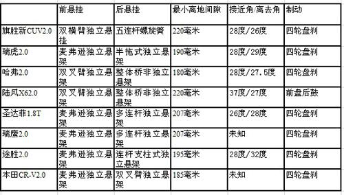 SUV車主要的任務(wù)不是去真正的越野探險,在提供舒適的前提下,它只需具備一定的通過能力,從這些SUV車的懸掛就能看出這一點。在這一點上,表格中的8款SUV車,除了陸風(fēng)的X6在性能上偏向越野車之外,其余各款車型,均以追求舒適為主。