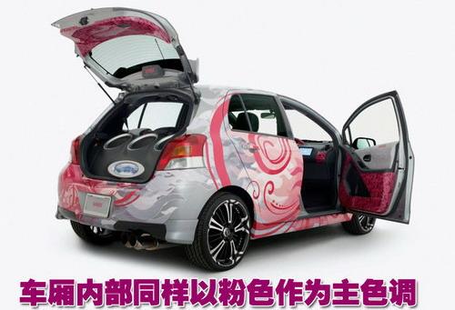 豐田雅力士的目標(biāo)消費人群主要為女性消費者,因此豐田此次與零部件合作部門以及售后合作商推出的這款改裝雅力士車型采用了粉色的車身噴涂,其車廂內(nèi)部也是以粉色作為主色調(diào)。