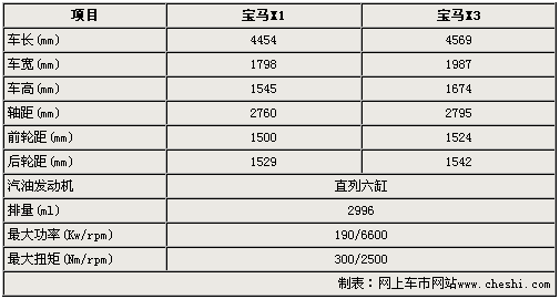 寶馬X1的長寬高分別為4454mm、1798mm、1545mm,軸距達(dá)到2760mm,與寶馬X3的4569mm、1853mm、1674mm、2795mm基本處于同一檔次。由于同樣搭載3.0升直列六缸發(fā)動機(jī),所以在動力性能方面寶馬X1甚至優(yōu)于寶馬X3。