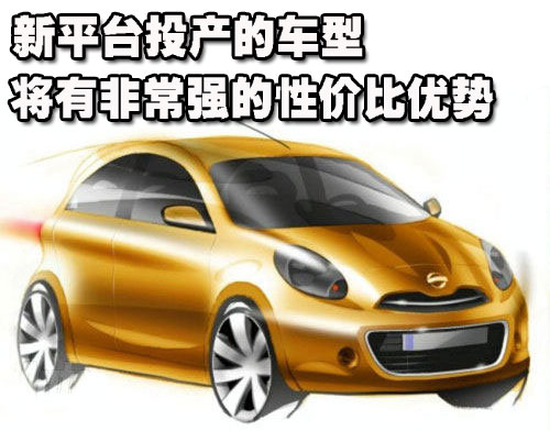 日產(chǎn)目標是在2011年,在全球每年銷售100萬臺V平臺車型,其中中國市場將占全球份額的15%-20%,既東風(fēng)日產(chǎn)每年生產(chǎn)及銷售15-20萬臺微型車。