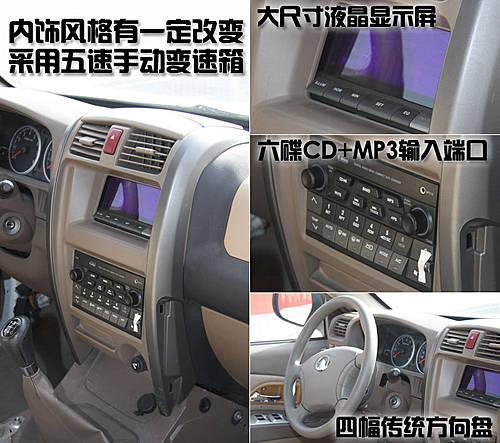 哈弗H5的內飾也比較符合長城汽車SUV產品的設計風格,中央控制區(qū)仍然是方方正正的造型。不得不說的是,哈弗H5內飾的用料依然顯得塑料感太強。但這款車的內部配置卻非常齊全,不僅配備了六碟CD和MP3輸入端口,還配備了大尺寸液晶顯示屏。哈弗H5采用的四幅式方向盤顯得比較簡單,沒有音響按鍵和定速巡航功能。