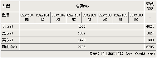 從參數(shù)上來看,名爵MG6與榮威550的軸距是一樣的,畢竟出自一個平臺都為2705mm,不過MG6雖為掀背車在車長方面卻比550要長一些,也比550略寬10mm,但車高差一點點。據(jù)了解,名爵MG6將推出了8個型號的車型,預計將有1.8L和1.8T兩個排量車型。