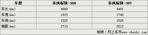 東風(fēng)標(biāo)致308車身尺寸明顯超過了標(biāo)致307車型,4680mm車長、1815mm的車寬和1525mm的車寬,使得標(biāo)致308外形更加大氣,同時在加上2710mm的軸距,進(jìn)一步確保了標(biāo)致308車內(nèi)空間的寬敞,標(biāo)致307的軸距僅為2612mm。