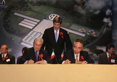 現(xiàn)場,阿拉巴馬州州長Robert Riley、正道汽車公司董事長仰融、意大利喬治亞羅公司創(chuàng)始人喬治亞羅,及相關(guān)300名嘉賓參加了現(xiàn)場簽約儀式。并包括美國、歐洲和中國的多家媒體。