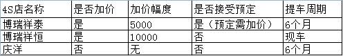 附:部分4S店的加價(jià)情況(以下均為普通版高爾夫6的加價(jià)幅度,所有加價(jià)情況均為銷售人員口頭傳達(dá),可能會(huì)發(fā)生變化)