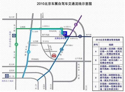 自駕車可經(jīng)以下路線行至花博會停車場,換乘免費擺渡車前往天竺新國展參觀: