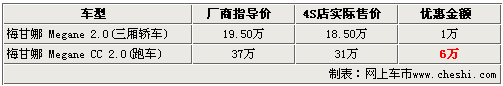 與雪鐵龍、標(biāo)致同為法系知名汽車制造商的雷諾,以進(jìn)口方式引進(jìn)國(guó)內(nèi)的車型有風(fēng)景、梅甘娜以及拉古娜等多款車型。其中梅甘娜車型分為三廂版本和跑車兩個(gè)版本。近日根據(jù)網(wǎng)上車市價(jià)格檢測(cè)系統(tǒng)顯示,梅甘娜全系車型均出現(xiàn)了價(jià)格松動(dòng),三廂普通版車型可優(yōu)惠1萬(wàn)元,而跑車版梅甘娜的優(yōu)惠幅度達(dá)到6萬(wàn)具體車型售價(jià)見(jiàn)下表: