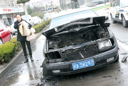 2008年10月26日上午,謝先生和平時一樣駕車上班。正當(dāng)他發(fā)動那輛已經(jīng)開了3年多的雙環(huán)車準(zhǔn)備出發(fā)時,意想不到的事情發(fā)生了!败囎硬艈,還未起步,透過前擋風(fēng)玻璃,我看到有一股煙從發(fā)動機艙中升起!敝x先生說,看到這場景,他本能反應(yīng)就是趕緊拉開車門逃出了車。