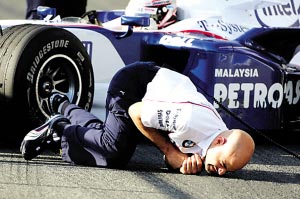 這起事故已得到寶馬-索伯車隊的證實,車隊暫時終止了KERS試驗車的測試進程,并對事故原因展開調(diào)查。好在當(dāng)事機械師除了手臂輕微擦傷外,并無大礙。