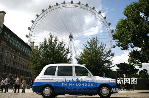 中新網(wǎng)8月18日電 據(jù)英國(guó)倫敦投資局消息,北京奧運(yùn)會(huì)期間,倫敦投資局將在中國(guó)舉辦“走進(jìn)倫敦之旅”大型活動(dòng),推介英國(guó)文化,推介倫敦奧運(yùn);顒(dòng)期間,在上海生產(chǎn)的TX4將作為中英合作的成功象征隨團(tuán)出征。記者在現(xiàn)場(chǎng)看到,這輛出租車(chē)以白藍(lán)為主色調(diào),車(chē)身上還印有“THINK LONDON”“探尋倫敦”的字樣。
