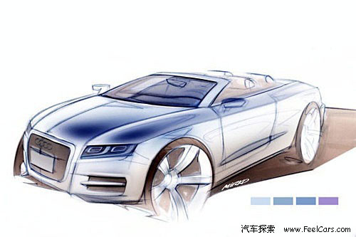 與當(dāng)今流行的折疊硬頂不同,從草圖中我們可以看到R8敞篷版本將采用可折疊帆布軟頂設(shè)計(jì)。軟頂不但能營造獨(dú)特的古典氣質(zhì),質(zhì)量也更輕有助于車輛達(dá)到更好的平衡。另外,因?yàn)橐子谡郫BA5敞篷版后備箱空間也將比同級別硬頂車型更大。