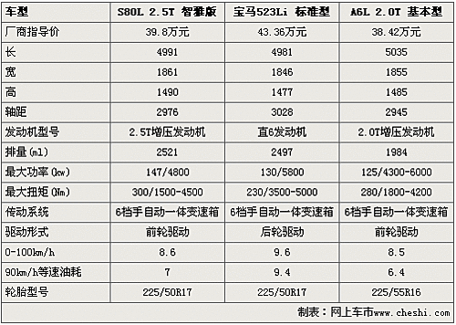 整體來看,三款車的配置只能滿足基本的需求,如果您要是有更高的需要還要選擇更高配置的車款,應該說三款車寶馬5的價格是最高的,但配置并不是最齊全的,S80L的配置要相對齊備一些,不過品牌影響力與寶馬還是有差距的。而A6L的配置雖然稍差一些,但售價是最低的。到底要選擇哪款,還是需要您仔細斟酌了。