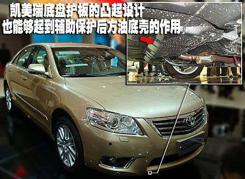 凱美瑞的發(fā)動(dòng)機(jī)下護(hù)板面積并不算大,發(fā)動(dòng)機(jī)油底殼以及變速箱油底殼位置下方?jīng)]有被護(hù)板覆蓋。但是其下護(hù)板的凸起設(shè)計(jì)相比發(fā)動(dòng)機(jī)油底殼以及變速箱油底殼更加低,因此也能夠起到一定的保護(hù)作用。