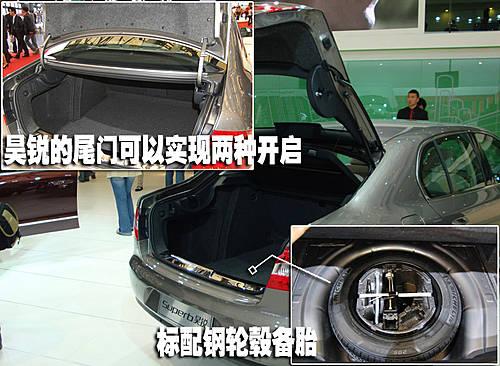 斯柯達(dá)昊銳的行李箱有兩種開啟方式,一種是像普通轎車一樣的僅代開行李箱蓋,另一種是完全將行李箱蓋連同后風(fēng)擋玻璃打開(與明銳相同)的掀背式打開方式,這項(xiàng)配置在同級別車型中絕無僅有,其造價也要大大高于普通車型。斯柯達(dá)昊銳的備胎也是普通的鋼輪轂。