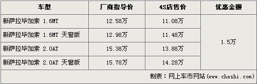 據(jù)4S店銷售人員介紹,現(xiàn)在消費(fèi)者購買新薩拉畢加索可優(yōu)惠現(xiàn)金1.5萬元。新薩拉畢加索分為1.6L和2.0L兩種排量,1.6L車型分為手動(dòng)和手動(dòng)天窗兩款車型,經(jīng)優(yōu)惠后售價(jià)分別降為了11.08萬元和11.48萬元。2.0L車型分為自動(dòng)和自動(dòng)天窗版,經(jīng)優(yōu)惠后售價(jià)分別降到了13.88萬元和14.28萬元。銷售人員還介紹,2.0L車型店內(nèi)有現(xiàn)車,而1.6L車型需消費(fèi)者交1萬元訂金約等一個(gè)月才可提車。