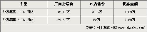 據(jù)經(jīng)銷商銷售人員介紹,大切諾基3.7L車型的優(yōu)惠金額為1.69萬元,而高排量的5.7L車型優(yōu)惠金額為7.69萬元,達(dá)到了全系的最高。在售的Jeep-大切諾基共分為3.7L四驅(qū)和5.7L四驅(qū)兩個(gè)車型。3.7L四驅(qū)型的優(yōu)惠金額經(jīng)1.69萬元的優(yōu)惠后,售價(jià)降為了40.5萬元。而排量稍大的5.7L四驅(qū)型的優(yōu)惠金額為7.69萬元,降價(jià)后的售價(jià)為52萬元。