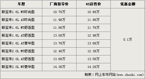 新寶來是一汽大眾去年10月上市的新車型,也是一汽大眾近期受關(guān)注度最高的車型。新寶來分為1.6L及2.0L兩個排量,全系車型多達7個,價格區(qū)間為10.78萬元-14.38萬元。近期根據(jù)網(wǎng)上車市價格監(jiān)測系統(tǒng)顯示,新寶來全系優(yōu)惠1000元,具體詳情請看下表: