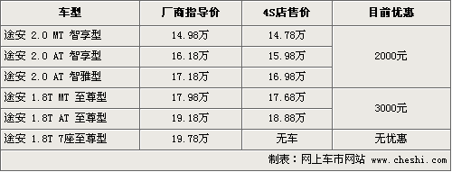 據(jù)4S店銷(xiāo)售人員介紹,新途安經(jīng)過(guò)官方價(jià)格下調(diào)后優(yōu)惠的幅度有所減少。目前消費(fèi)者購(gòu)車(chē)的話(huà)幅度在2000元—3000元,其中2.0三款車(chē)優(yōu)惠2000元,1.8T優(yōu)惠3000元。4S店現(xiàn)車(chē)主要以銀色現(xiàn)車(chē)為主,1.8T7座至尊版沒(méi)有現(xiàn)車(chē)供應(yīng),消費(fèi)者訂車(chē)的話(huà)需要等2個(gè)星期左右,訂金交2000元。