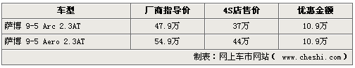 據(jù)4S店銷售人員介紹,目前薩博9-5在售車型各店內(nèi)現(xiàn)車較少,雖然優(yōu)惠幅度較大但是仍需消費(fèi)者提前預(yù)訂,訂金2萬。繳納訂金約兩周后既可提車,提車時(shí)付清全款即可,全系車型均可享受到最高10.9萬的優(yōu)惠。問及其它而頓優(yōu)惠活動(dòng)時(shí),銷售人員表示之前曾經(jīng)有過優(yōu)惠達(dá)12.9萬的特價(jià)車,但僅有一輛。