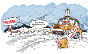 雪天行車,首要是慢,其次是和前車保持足夠的距離,再有要提前剎車,當(dāng)發(fā)現(xiàn)和前車的距離在縮短,不管什么原因都要馬上收油減速并將腳放在剎車踏板上準(zhǔn)備剎車,千萬別有僥幸心理,麻痹大意。