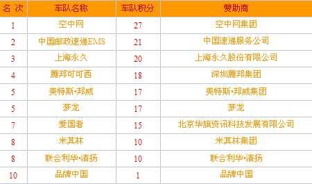 2008年AGF賽事車隊(duì)積分