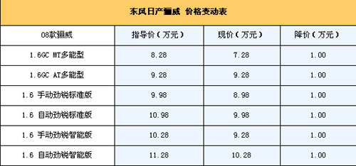 近日,我們從北京地區(qū)的一些東風(fēng)日產(chǎn)經(jīng)銷商處了解到,驪威目前全系優(yōu)惠1萬元。詳情下表。