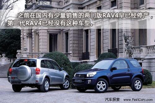 由于RAV4在美國和歐洲地區(qū)都有銷售,考慮到歐洲消費(fèi)者的用車習(xí)慣之前的兩代產(chǎn)品均有兩門版。而從2006年開始生產(chǎn)的第三代產(chǎn)品開始就已經(jīng)不再提供兩門車型,因此可以肯定國內(nèi)也不會再有兩門版RAV4銷售了。