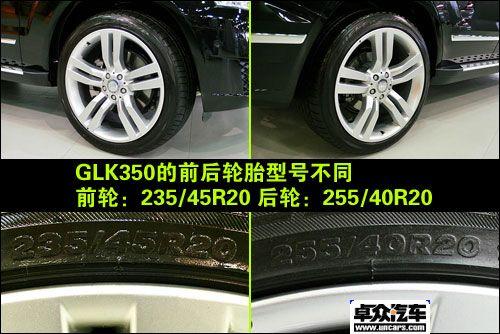 GLK大燈同樣采用簡(jiǎn)單的直線條設(shè)計(jì),只是邊角處加入了凌厲張揚(yáng)的元素,看上去很像鷹眼,非常酷。這就是它“硬派”一面。而之所以說(shuō)它“公路”,則是在它的總體定位——奔馳GLK是針對(duì)寶馬X3推出的緊湊型SUV車型,底盤懸掛系統(tǒng)以及動(dòng)力配備都與X3類似。GLK350前后輪胎采用不同的尺寸,前輪采用較窄的235/45R20,后輪的則是稍寬的255/40R20,這樣的設(shè)計(jì)也是為了提升公路性能。