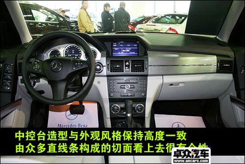 GLK的中控臺與外觀造型一樣,采用大量的直線條和切面,硬朗風(fēng)格與外觀保持一直。不過也不缺少時尚新鮮的元素,像中控臺上的銀色裝飾就起到了很好的點綴作用。三個獨立圓形的儀表采用了很特別的設(shè)計,信息顯示屏占據(jù)了中央的圓形部分,非常新鮮。方向盤也不例外,雖然設(shè)計簡單,但是看上去很骨感很漂亮。主機的造型也很簡單,與它集成在一起的車載電話操作面板采用了圓形的按鍵設(shè)計,在眾多直線與方塊中顯得別具一格。