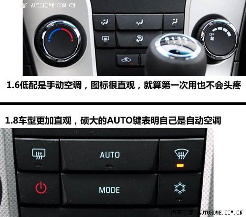區(qū)分1.6和1.8的中控看起來(lái)比較困難,實(shí)際主要觀察空調(diào)部分的區(qū)別就能明了,科魯茲不管是手動(dòng)還是自動(dòng)空調(diào)都挺簡(jiǎn)潔,上手不需要什么琢磨的時(shí)間,不過(guò)上部的音響控制區(qū)就有些晦澀了,很多按鈕如果不嘗試看字面永遠(yuǎn)也不知道什么功能,例如TP、AS、FAV等。
