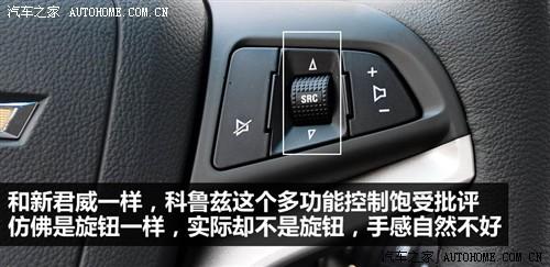 方向盤(pán)第二個(gè)不足來(lái)自于多功能按鈕:科魯茲的這個(gè)多功能按鈕設(shè)計(jì)和使用和新君威一模一樣,這個(gè)旋鈕模樣的按鈕其實(shí)是不能旋轉(zhuǎn)的,上下推拉的感覺(jué)很差,因?yàn)槿硕紩?huì)把圓形物體默認(rèn)為旋轉(zhuǎn)形式,于是感官就會(huì)很不舒服。